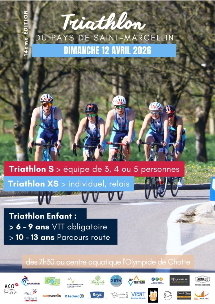 La quatorzième édition du Triathlon du Pays de Saint-Marcellin a lieu le dimanche 12 avril 2026.
