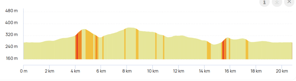 20 km / 230m D+ / Parcours : https://www.openrunner.com/route-details/11796639