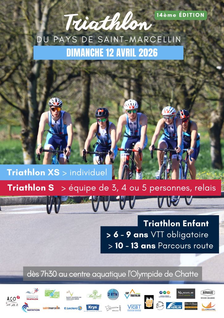 La quatorzième édition du Triathlon du Pays de Saint-Marcellin a lieu le dimanche 12 avril 2026.